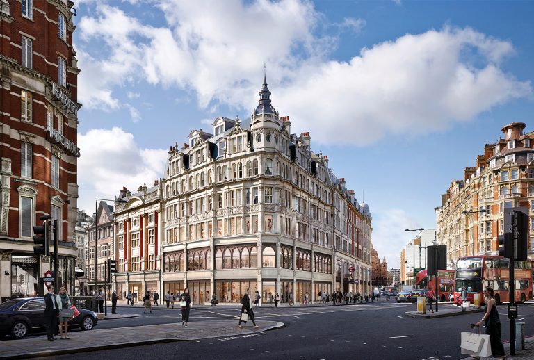 The development, designed by leading architects Fletcher Priest, transforms an iconic corner of Knightsbridge to deliver a brand-new mixed-use scheme behind retained period façades preserving the unique character of the area. The development once fully complete delivers seven large retail units, a 67,000 sq ft office building, 33 apartments and a rooftop restaurant. To date three of the seven flagship stores have been pre-let.